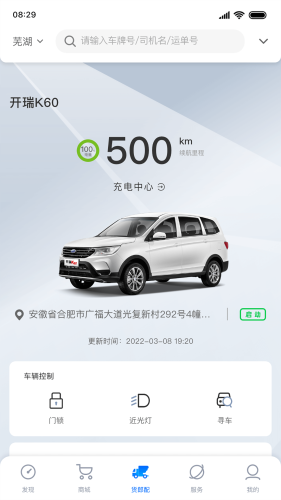 2、【车辆服务】查看车辆状态,获得一键救援、违章查询、年检、预约维保服务;服务地图充电桩、服务站、经销商网点查询;