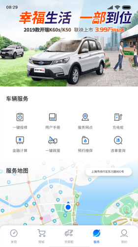 一键救援、违章查询、年检、预约维保功能上线,服务地图信息更新,查找服务更方便;