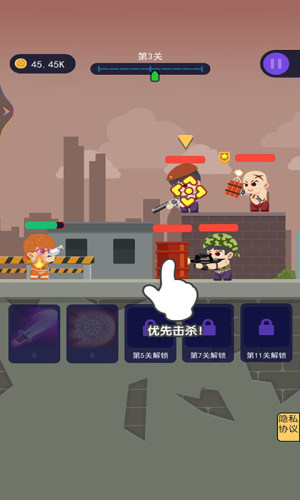 你能解锁狙击枪在远处狙杀敌人,展现你的技巧能一枪干掉更多敌人。