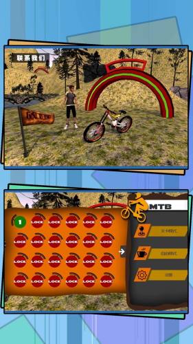 2、有很多山地自行车的存在,好好的去驾驶一番,和其他的玩家开始一场竞速的旅程。