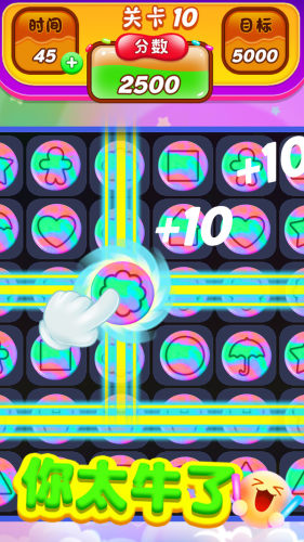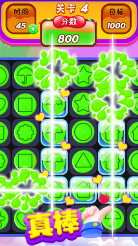 2、轻松愉快,淘汰画面精美的糖果,淘汰不可错过的经典方块。
