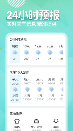 【逐小时天气预报】轻松查阅24小时内天气变化,提早预防早晚温差过大;