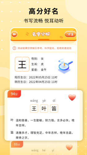 下载起名解名宝宝取名软件18.6M738人在玩起名解名宝宝取名APP安卓下载是广东省深圳云易智慧网络科技有限公司开发的手机应用程序。选择灵占起名,选择最好的名字,选择最好的人生。