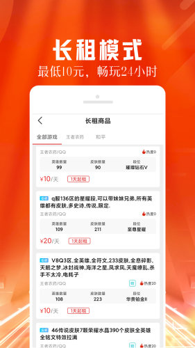 每天租号为玩家提供高端账号体验服务的综合APP。
