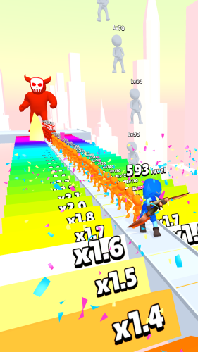 升级进化论,一款趣味模拟休闲小游戏。游戏中操控你角色勇往直前,面对来袭的敌人击败所有,扫清扫路,直接通向终点,更多趣味关卡解锁挑战。