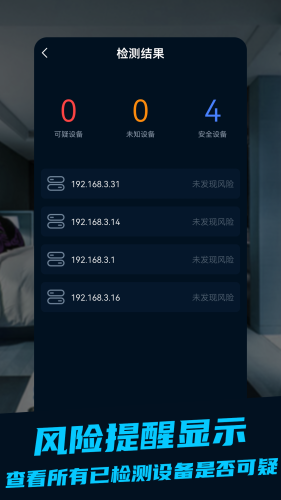 1.扫描房间无线可疑设备、隐私防护、噪音检测和安心睡眠软件!
