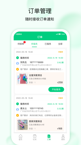 技者接单可定期同步人员位置信息,让服务者先人一步抢到最近的用户订单,节省大量路途时间。
