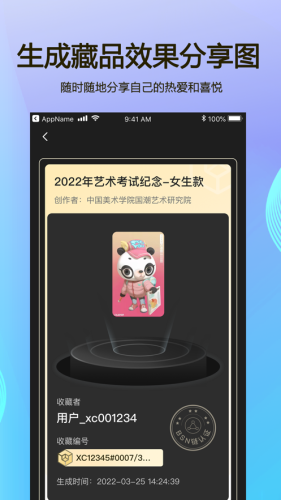依托区块链溯源,藏品确权及铸造链上留痕,来源可溯,记录可查,版权可信。