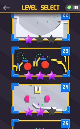 2、上百个不同难度的关卡,合理的控制弹珠不停的前行;