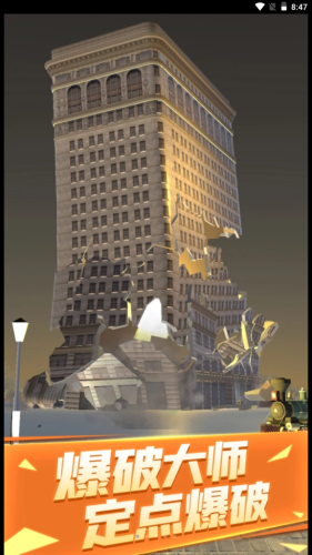 玩家在游戏中的玩法就是将一个炸药安置在一个个建筑之下,随着爆炸计时的响起,当最后一秒读完之后,整个建筑将会在顷刻间轰然倒塌,变得支离破碎,无论是多么坚固的钢筋还是多么厚实牢固的混凝土,在这一刻都灰飞烟灭;感兴趣的小伙伴不妨来体验一下呀!