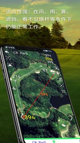无论刮风下雨,可准确给出球道任意码点到果岭中心的距离。