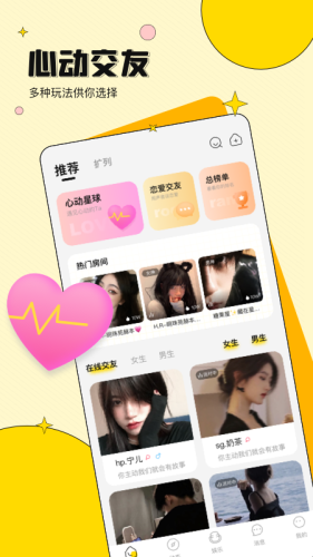 2.扩列交友:可创建扩列交友语音房间,为您提供交朋友处CP的功能