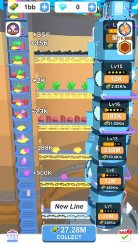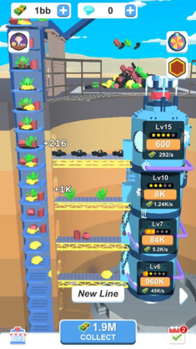 2、您可以解锁新设备以收集不同的矿石,高级矿石具有更高的价值。