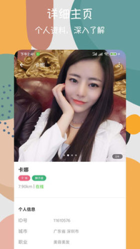 4、约会同城交友,海量陌生好友在线互动,24小时全天候都能随时随地与他她互动热聊,畅所欲言任何话题,与同城好友亲密无间。