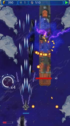 3、游戏弹幕:游戏的玩法是弹幕射击,弹幕射击在当时有很多的同类型的游戏,而远征战机这款游戏无意是最优秀的,