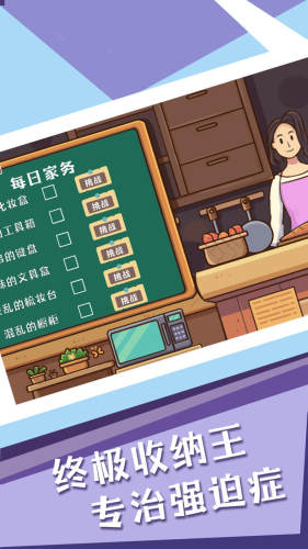 益智模拟游戏,玩家扮演收纳师收纳各种各样的物品,一些物品隐藏的比较深,需要玩家破解解谜团,找到规律。
