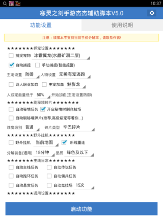 寒灵之剑手游杰杰辅助脚本主要提供抓宠、刷秘境碎片、野外挂机、主线日常等功能,支持安卓手机和模拟器设备,使用时注意分辨率需匹配。