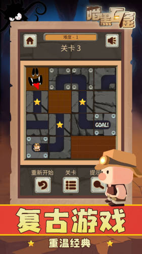 暗黑石窟是个非常容易上瘾的迷宫探索游戏,其实这个暗黑石窟玩法很经典,保证你玩过,在黑暗的石窟迷宫中找到正确的路径,通过移动石头来发现隐藏的通道,如果你能够在地图中收集星星可以获得更多的分数和奖励哦。
