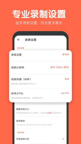 支持录制手机内部声音,无杂音;也支持同时录制声音,还有主播模式同时录制解说画面