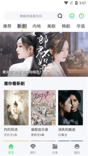 2、首页列表呈现最新的电视剧和综艺,快速看到你想看的。
