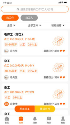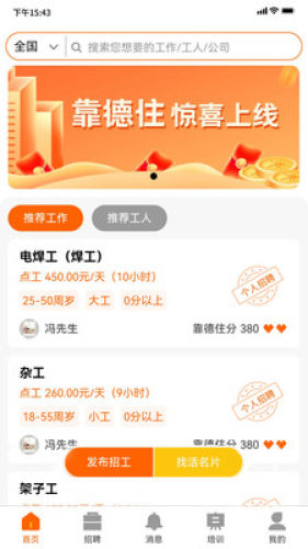 1、新增:靠德住信用分,分数越高,越受招工方青睐