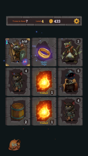 2、击败老板并增加游戏难度并升级英雄。 获得一个宝箱作为奖励。 小心:在有用的卡片中,一张可能会遇到危险的卡片,例如毒药。