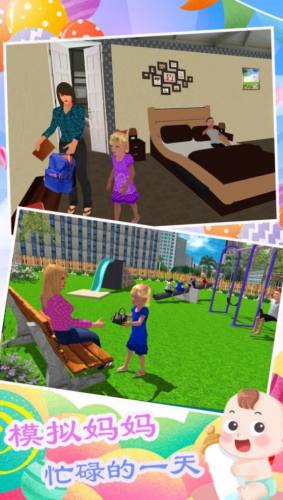 双胞胎模拟生活是款好玩的模拟经营手游,和你的爱人一起来照顾你们的孩子吧,辛苦一家之口十分的让人羡慕,一起来参加各种亲子活动来增加你们之间的感情吧,丰富的游戏玩法,各种趣味的游戏内容等着你来体验,一起来努力创建美好家庭!