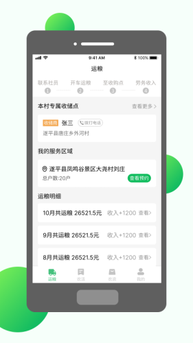 APP包含粮食运输、农活管理、农资管理、协助社员等功能,