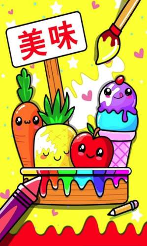 5、有趣的食物填色游戏,带有卡哇伊风格的填色页应用