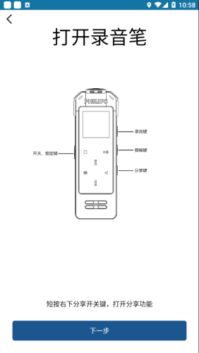 ·APP与机器连接使用时,需要断开设备,请先保存录音,再去设置菜单断开设备,不能直接关掉APP,避免设备与APP的连接出现异常: