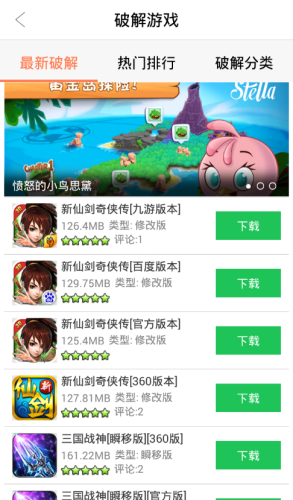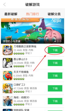 2、进入到破解游戏列表页,选择你想玩的破解游戏,并点击下载