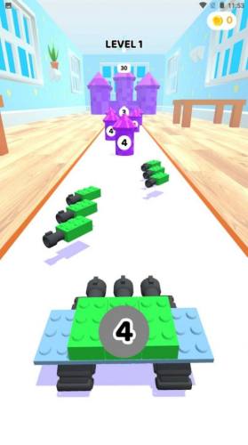 1、挑战一个个越来越难的游戏关卡,获得更高的分数升级你的坦克;