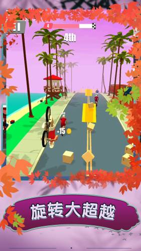 非常有趣的冒险闯关游戏,清新简约的游戏画面,简单易懂的游戏操作,玩家在游戏中需要驾驶自己的单车在赛道上与其他人进行比拼,玩家需要合理利用自己的体力,这是一个路程较长的比赛,途中会有一些道具和起跳台,玩家可以多多尝试!