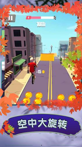 游戏上手很简单,玩家将在游戏中骑着自行车展开跑酷之行
