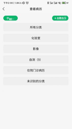 上传的病历资料,按患者姓名分类,同一患者下,又按照住院门诊病历、化验室、影像、自测等分类存放,便于查看。