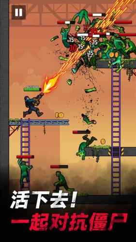 2、多种游戏方式 — 从军事炮台开火,击杀尸群、刺倒丧尸保住性命,或冒险徒步追击丧尸