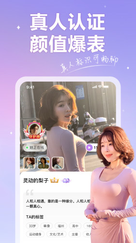 4、【真实】一个真实安全的交友平台,在这里,你结交到的TA都是已通过实名认证的,你可以敞开心扉,放心交友。