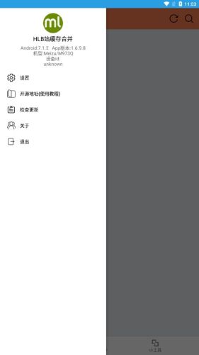 1、下载HLB站缓存合并APP,打开应用,点击主页左上角