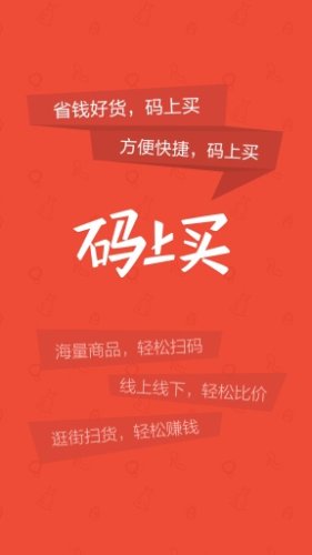 街上逛扫一扫,码上买不怕宰。“码上买”是一款专为爱逛街的您打造的购物神器。通过手机摄像头对准商品条形码,就能在100多家主流电商,16亿个商品页中查询购买。还可以找到周边商店的价格和位置信息。在已收集整理的1亿个条码中,衣服、包包、鞋子、化妆品、超市生活用品、进口食品、数码、家电、医疗、药品、烟酒、图书应有尽有。另外,主动上传补充信息的,会直接给最有诚意的现金奖励。