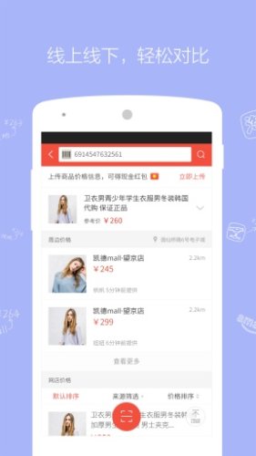 「服装比价,全网独家」收录海量其他同类扫码软件不收录的非标准服装条码,逛街买服装,从此不怕宰!