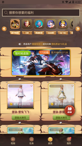 软件支持市面上热门的游戏,根据不同皮肤等级进行兑换。