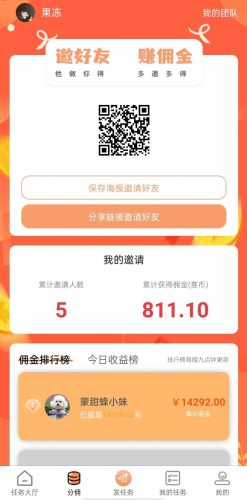2、分佣随时可以,价格一目了然,还有自己的邀请也可以看到;