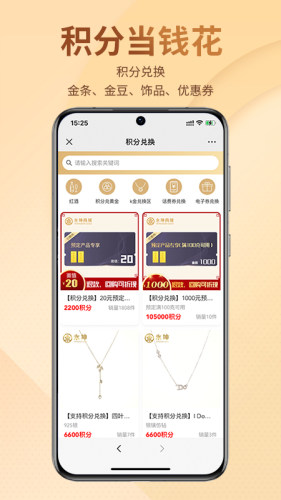 商城独有的积分购物模式,积分可以免费兑换黄金,首饰,优惠券等