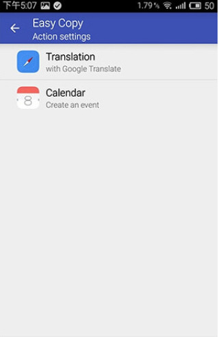 Easy Copy还内置了两个分享动作:分享到Google 翻译和日历会自动执行翻译以及创建事件的动作。