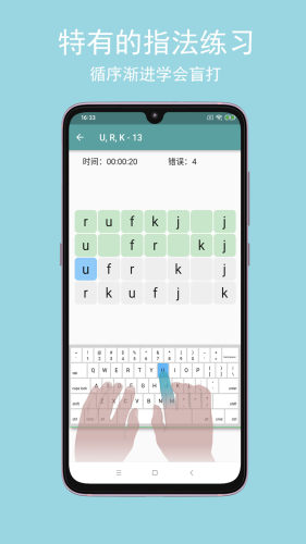 2. 特有的指法练习关卡,助你成为盲打高手。