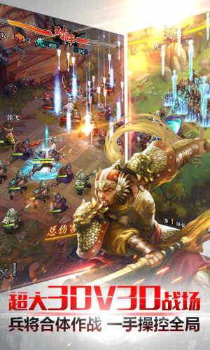 60部队同屏大战,数百种绝世兵将自由自合,以将带兵、合体作战,一手操控全局,轻松全屏秒杀!