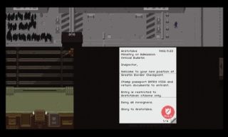 每天主角需要面对各种各样的入境者,以及需要审查各种各样的证件。并以判定这名入境者是否符合规定准许入境。主角每天的收入与正常处理的入境者数量挂钩并利用这些收入维持家人的生活。无论是工作方面还是收支安排,若稍有不慎,家人甚至是主角自己就会丧命。