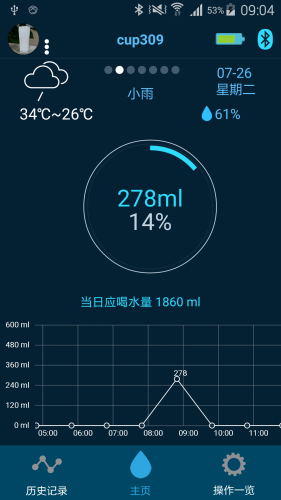 用户可以根据个人需求,定制喝水计划,定时提醒,定时监控,充当使用者的健康小管家。