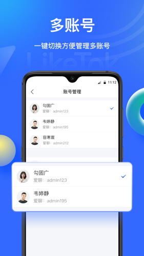 同设备支持多账号登录,随时随地一键切换。方便管理