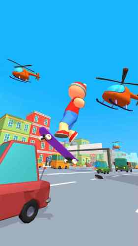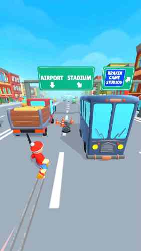勾车跑酷游戏中需要扔出你的绳子,钩住汽车、标志或直升机,然后从一个跳到另一个,快速完成。 注意障碍物和交通。 享受您的超快滑板之旅!
